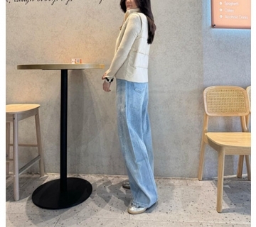 質感水鑽淺牛仔寬褲