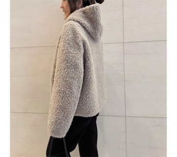 連帽一體成型羊毛皮毛外套