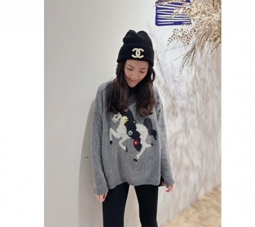 小馬刺繡浣熊毛衣