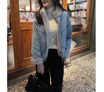 水貂領牛仔羽絨外套