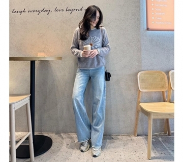 水鑽直筒牛仔寬褲