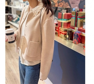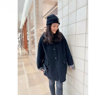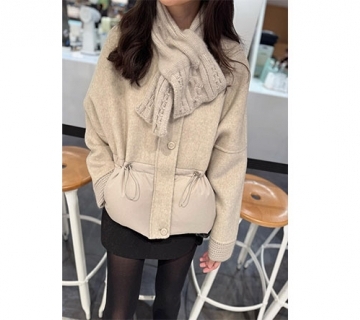 1111限定活動 高質感鵝絨拼接羊絨短大衣