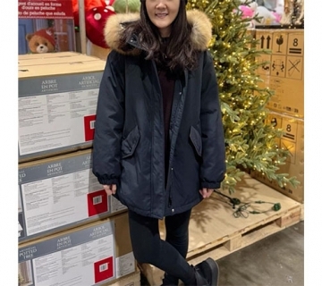 12月 限定優惠 浣熊脖圍鵝絨拼羊絨大衣
