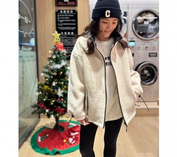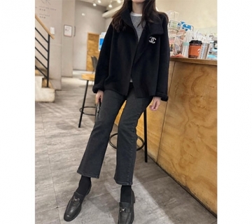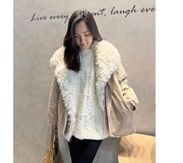 1111限定活動 高質感鵝絨拼接羊絨短大衣